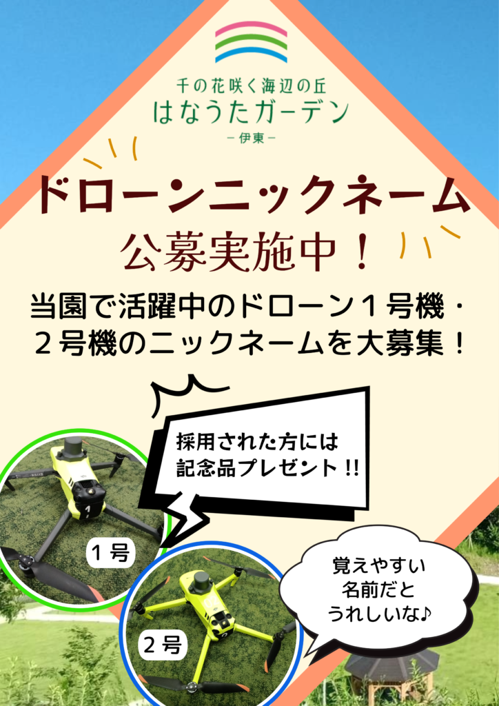 はなうたガーデンで活躍中のドローンのニックネームを募集しております!